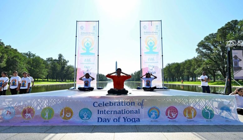 വാഷിംഗ്ടൺ, ഡിസി:പതിനൊന്നാമത് അന്താരാഷ്ട്ര യോഗ ദിനത്തിന്റെ വർണ്ണാഭമായ മുന്നോടിയായി, ജൂൺ 19 ന് ചരിത്രപ്രസിദ്ധമായ ലിങ്കൺ മെമ്മോറിയലിൽ ഇന്ത്യൻ എംബസി സംഘടിപ്പിച്ച ഒരു യോഗ സെഷൻ ശ്രദ്ധേയമായി . ഇന്ത്യയുടെ പുരാതന പാരമ്പര്യം ആഘോഷിക്കാൻ ഒത്തുകൂടിയ ഇന്ത്യൻ പ്രവാസികളും തദ്ദേശീയ അമേരിക്കൻ നിവാസികളും ഉൾപ്പെടെ വലിയൊരു ജനക്കൂട്ടമാണ് പരിപാടിയിൽ പങ്കെടുത്തത്.