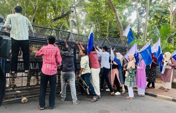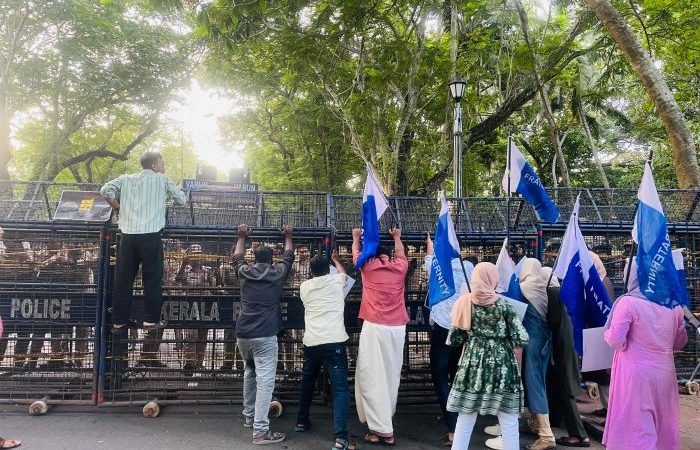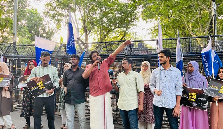 തിരുവനന്തപുരം: ഭാരതാംബ ചിത്രത്തിൻ്റെ മറവിൽ ഗവർണർ നടത്തുന്ന ഹിന്ദുത്വവത്ക്കരണ ശ്രമങ്ങൾക്കെതിരെ ഫ്രറ്റേണിറ്റി മൂവ്മെൻ്റ് സംസ്ഥാന കമ്മിറ്റി രാജ്ഭവനിലേക്ക് പ്രതിഷേധേ മാർച്ച് സംഘടിപ്പിച്ചു. മ്യൂസിയം പോലീസ് സ്റ്റേഷൻ പരിസരത്ത് നിന്നാരംഭിച്ച മാർച്ച് രാജ്ഭവന് മുന്നിൽ പോലീസ് തടഞ്ഞു. തുടർന്ന് നടന്ന പ്രതിഷേധ സംഗമം സംസ്ഥാന പ്രസിഡൻ്റ് നഈം ഗഫൂർ ഉദ്ഘാടനം ചെയ്തു. ഗവർണറുടെ ഹിന്ദുത്വ തിട്ടൂരങ്ങളെ വിദ്യാർത്ഥി – യുവജനങ്ങളെ അണിനിരത്തി ചെറുത്ത് തോൽപ്പിക്കുമെന്ന് അദ്ദേഹം പറഞ്ഞു. കാവി അജണ്ടകൾ കേരള മണ്ണിൽ നടപ്പാവില്ല. രാജ്ഭവനെയും സർവകലാശാലകളെയും ആർ.എസ്.എസ് ശാഖകളാക്കാമെന്നത് ആർലേക്കറുടെ വ്യാമോഹം മാത്രമാണ്. ആരിഫ് മുഹമ്മദ് ഖാനെ വെച്ച് കേരളത്തിൽ നടപ്പാക്കാൻ ശ്രമിച്ച അജണ്ടകൾ ആർലേക്കറെ വെച്ച് കൂടുതൽ ശക്തമായി നടപ്പാക്കാനാണ് കേന്ദ്ര സർക്കാർ പദ്ധതിയെന്നും നഈം ഗഫൂർ ചൂണ്ടിക്കാട്ടി.