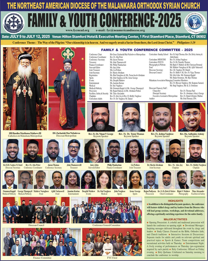 കൂടുതൽ വിവരങ്ങൾക്ക്: ഫാ. അബു വർഗീസ് പീറ്റർ, കോൺഫറൻസ് കോർഡിനേറ്റർ ഫോൺ: 914-806-4595, ജെയ്സൺ തോമസ്, കോൺഫറൻസ് സെക്രട്ടറി ഫോൺ: 917-612-8832, ജോൺ താമരവേലിൽ, കോൺഫറൻസ് ട്രഷറർ ഫോൺ: 917-533-3566