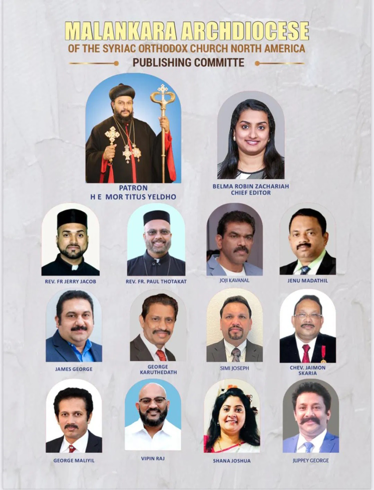 വളരെ മനോഹരമാം വിധം ഈ വിധം ഈ വര്ഷത്തെ മലങ്കരദീപം പ്രസിദ്ധീകരണത്തിന് തയ്യാറാക്കുവാന്, അശ്രാന്ത പരിശ്രമം നടത്തിയ ബെല്മാ റോബിന് സഖറിയ(ഡാലസ്, ടെക്സാസ്)- ചീഫ് എഡിറ്റര്, എഡിറ്റോറിയല് ബോര്ഡ് അംഗങ്ങളായ റവ.ഫാ.ജെറി.ജേക്കബ്(ന്യൂജേഴ്സി), റവഫാ.പോള് തോട്ടക്കാട്ട്(ഡാളസ്, ടെക്സാസ്), ജോജി കാവനാല് (ന്യൂയോര്ക്ക്), ജോര്ജ് കറുത്തേടത്ത് (ഡാളസ്, ടെക്സാസ്), ജെനു മഠത്തില് (കാനഡാ), സിമി ജോസഫ് (ഹൂസ്റ്റന്, ടെക്സാസ്), ജെയിംസ് ജോര്ജ് (ന്യൂജേഴ്സി), ഷെവ. ജെയ്മോന് സക്കറിയ (ചിക്കാഗോ), ജോര്ജ് മാലിയില് (ഫ്ളോറിഡ), വിപിന് രാജ് (ബാല്ട്ടിമോര്), ഷാനാ ജോഷ്വാ (ഫിലഡല്ഫിയാ), ജൂപ്പി ജോര്ജ് (കാലിഫോര്ണിയ) എന്നിവരെ പ്രത്യേകം അഭിനന്ദിക്കുന്നതായി ഭദ്രാസനാധിപന് അഭിവന്ദ്യ യല്ദൊ മോര് തീത്തോസ് മെത്രാപ്പോലീത്താ അറിയിച്ചു.