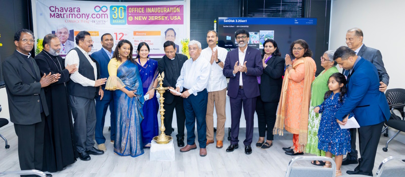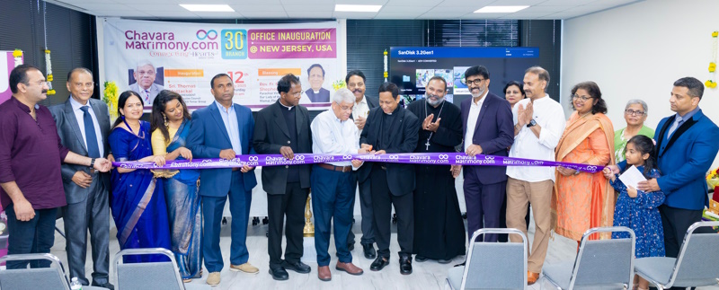 ന്യൂയോർക്ക്: വി. ചാവറ പിതാവിൻ്റെ കുടുംബ ദർശനങ്ങൾ ഉൾക്കൊണ്ട് 1996 ൽ കൊച്ചി ചാവറ കൾച്ചറൽ സെൻ്ററിൽ സ്ഥാപിതമായ സിഎംഐ വൈദീകരുടെ നേതൃത്വത്തിലുള്ള ചാവറ മാട്രിമണി മുപ്പതാം വർഷത്തിലേക്ക് കടക്കുന്ന വേളയിൽ അതിൻ്റെ 30 -) മത് ബ്രാഞ്ച് അമേരിക്കയിലെ ന്യൂജേഴ്സിയിൽ വൂഡ്ബ്രിഡ്ജ് സിറ്റിയിലെ ടോമാർ കെട്ടിട സമുച്ചയത്തിൽ ജൂലൈ 12 ന് ഉത്ഘാടനം ചെയ്തു.