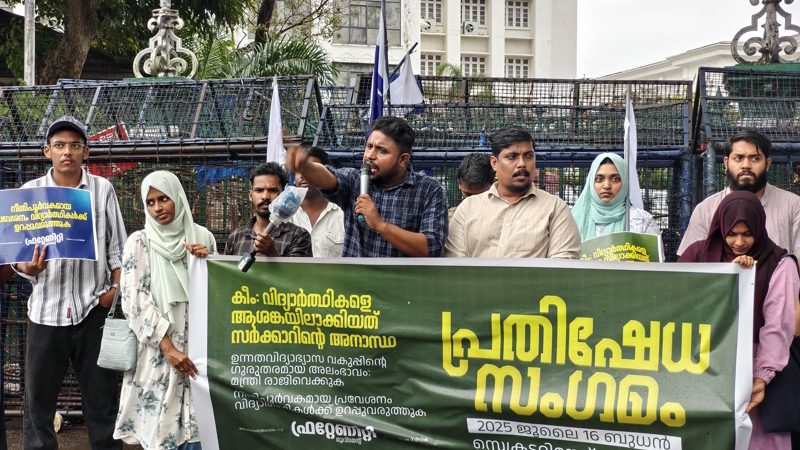 പ്രതിഷേധ മാർച്ച് സംസ്ഥാന പ്രസിഡൻ്റ്ന ഈം ഗഫൂർ ഉദ്ഘാടനം ചെയ്തു. കീമിൽ ഉണ്ടായിട്ടുള്ള മുഴുവൻ പ്രതിസന്ധികൾക്കും ഉത്തരവാദി സർക്കാറാണ്. സർക്കാർ അലംഭാവത്തിൻ്റെ ഉത്തരവാദിത്വമേറ്റെടുത്ത് ഉന്നത വിദ്യാഭ്യാസ മന്ത്രി രാജിവെക്കണം. മുഴുവൻ വിദ്യാർത്ഥികൾക്കും നീതിപൂർവകമായ പ്രവേശനം സാധ്യമാക്കിയില്ലെങ്കിൽ പ്രതിഷേധം ശക്തമാക്കുമെന്നും അദ്ദേഹം പറഞ്ഞു. പ്ലസ് ടു സ്റ്റേറ്റ് സിലബസ് പാസായി കീം എഴുതി പുതുക്കിയ റാങ്ക് ലിസ്റ്റിൽ 11,000 റാങ്കിൽ നിന്ന് 16,000 ത്തിലേക്ക് കൂപ്പുകുത്തിയ യാവർ എന്ന വിദ്യാർത്ഥിയും രക്ഷിതാവും സമരത്തെ അഭിസംബോധന ചെയ്തു.