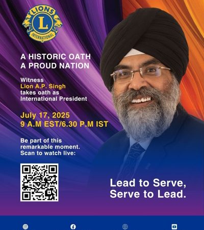ലയൺസ് ക്ലബ്സ് ഇന്റർനാഷണൽ പ്രസിഡന്റായി എ.പി. സിംഗിനെ തിരഞ്ഞെടുത്തു