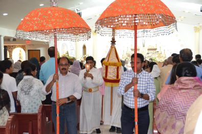 കൊടിയേറ്റിനും തുടർന്ന് നടന്ന ദിവ്യബലിക്കും ഇടവക വികാരി ഫാ. മാത്യൂസ് കുര്യൻ മുഞ്ഞനാട്ട്, അസി. വികാരി ഫാ. ജിമ്മി എടക്കുളത്തൂർ എന്നിവർ കാർമ്മികത്വം വഹിച്ചു. അൽഫോൻസാമ്മയുടെ ജീവിതം മാതൃയാക്കുവാനും തിരുനാളുകളിൽ പങ്കെടുത്തു ആത്മീയ കൃപാവരങ്ങൾ നേടുവാനും ഏവരേയും സ്വാഗതം ചെയ്യുന്നതായി ഇടവക വികാരിമാർ അറിയിച്ചു.