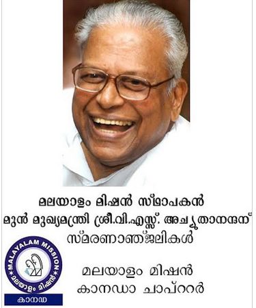 ലോകമെമ്പാടുമുള്ള കേരളീയരുടെ പുതുതലമുറയ്ക്ക് മലയാളം ഭാഷ പഠിക്കാനും, മലയാള നാടിന്റെ സംസ്കാരം പകർന്നു കൊടുക്കാനും വേണ്ടി ദീർഘ വീക്ഷണത്തോടെ വി.എസ് അച്യുതാന്ദൻ 2009 ജൂൺ 2 ന് ഉത്ഘാടനം ചെയ്ത, ഇന്ന് ലോകമെമ്പാടും അമ്പതിനായിരത്തിൽപരം പഠിതാക്കൾ ഭാഗമായിരിക്കുന്ന മലയാളം മിഷന്റെ സ്ഥാപകനെ മലയാളം മിഷൻ കാനഡ ചാപ്റ്റർ പ്രവർത്തകർ അനുസ്മരിച്ചു.