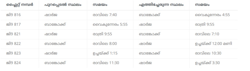 പുതിയ വിമാനങ്ങളുടെ സമയക്രമം (പ്രാദേശിക സമയം):