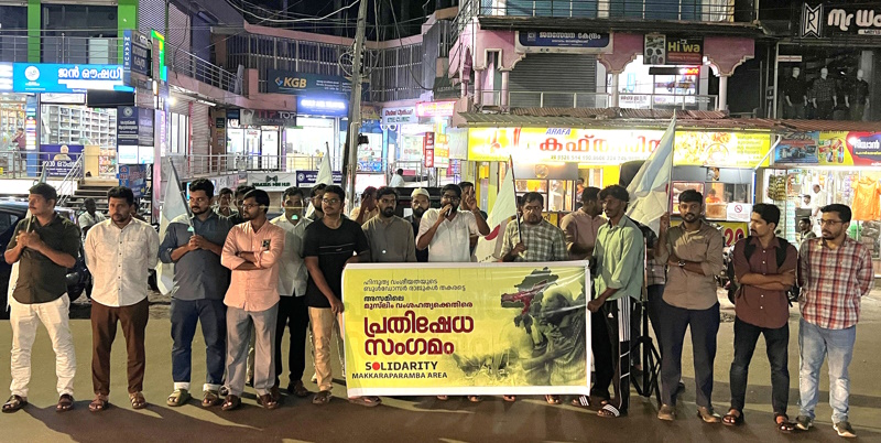 സോളിഡാരിറ്റി മക്കരപ്പറമ്പ് ഏരിയ പ്രസിഡന്റ് ലബീബ് മക്കരപ്പറമ്പ് അദ്ധ്യക്ഷത വഹിച്ചു. സെക്രട്ടറി സി.എച്ച് അഷ്റഫ് നന്ദി പറഞ്ഞു. പ്രതിഷേധ പ്രകടനത്തിന് ഏരിയ ജോ. സെക്രട്ടറി ജാബിർ പടിഞ്ഞാറ്റുമുറി, അംജദ് നസീഫ് മൊട്ടമ്മൽ, ഷബീർ വടക്കാങ്ങര, റബീ ഹുസൈൻ തങ്ങൾ എന്നിവർ നേതൃത്വം നൽകി.