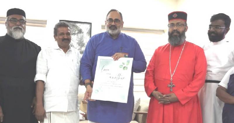 തിരുവനന്തപുരം: ഛത്തീസ്ഗഡില് അറസ്റ്റിലായ കന്യാസ്ത്രീകളെ മോചിപ്പിച്ചതിന് നന്ദി അറിയിക്കാൻ ബിലീവേഴ്സ് ചർച്ച് അതിരൂപതാ അദ്ധ്യക്ഷൻ ബിഷപ്പ് മാത്യൂസ് സിൽവാനിയോസിന്റെ നേതൃത്വത്തില് ഒരു സംഘം ക്രിസ്ത്യൻ നേതാക്കൾ കേക്കുമായി ബിജെപി ഓഫീസിലെത്തി ബിജെപി സംസ്ഥാന പ്രസിഡന്റ് രാജീവ് ചന്ദ്രശേഖറിന് കേക്ക് സമ്മാനിച്ചു.