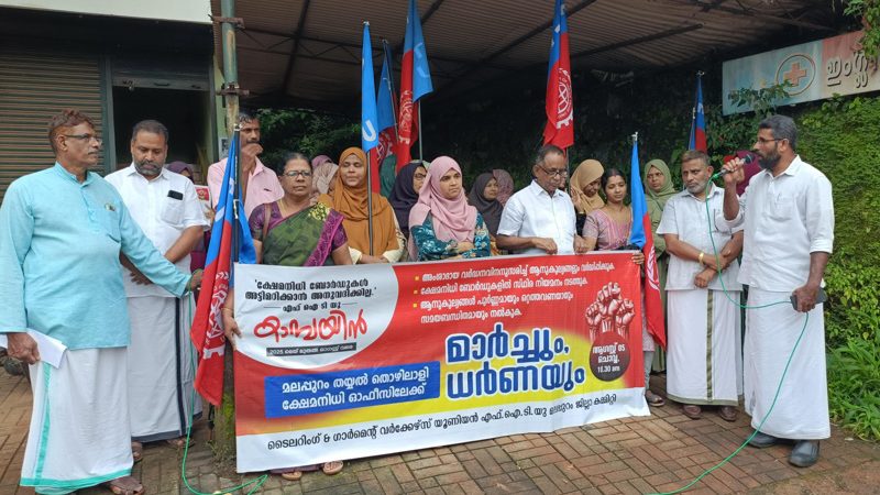 നിരവധി പേർ പങ്കെടുത്ത മാർച്ച് ധർണയും ടൈലറിംഗ് & ഗാർമെന്റ് വർക്കേഴ്സ് യൂണിയൻ സംസ്ഥാന പ്രസിഡന്റ് ഹംസ എളനാട് ഉദ്ഘാടനം ചെയ്തു. ക്ഷേമനിധി ഓഫീസിലേക്ക് മാർച്ചും ധർണയും സംഘടിപ്പിച്ചു..