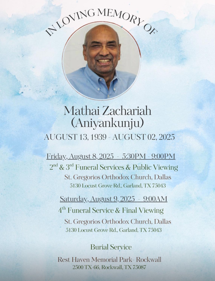 സ്ഥലം: സെന്റ് ഗ്രിഗോറിയോസ് ഓർത്തഡോക്സ് ചർച്ച്, ഡാളസ്