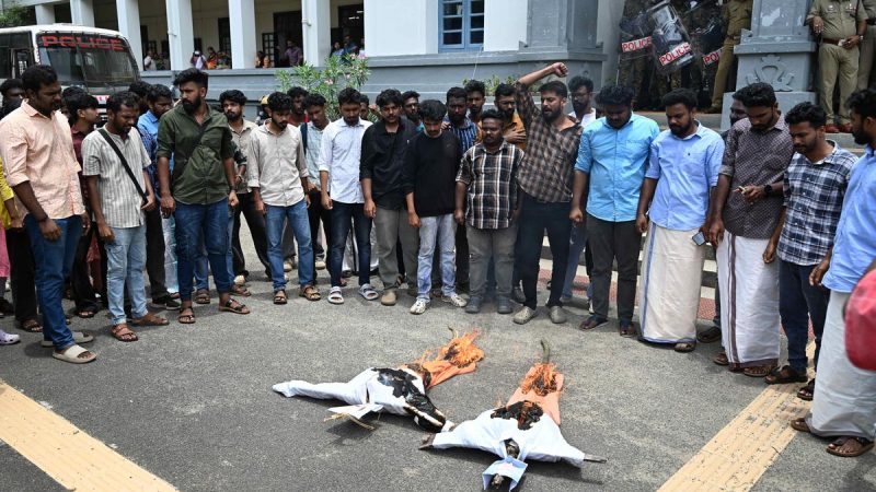 കേരള സർവകലാശാല കാമ്പസിൽ ഗവർണറുടെയും വൈസ് ചാൻസലറുടെയും കോലം കത്തിച്ചു. ബിജെപി പിന്തുണയുള്ള സിൻഡിക്കേറ്റ് അംഗങ്ങൾ സംഭവത്തെ അപലപിച്ചു.