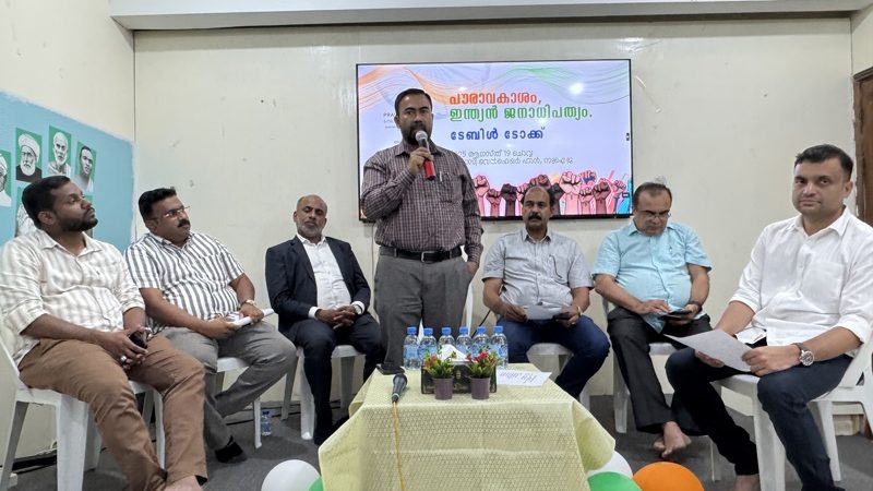 പ്രവാസി വെല്ഫയര് സംസ്ഥാന പ്രസിഡണ്ട് ആര് ചന്ദ്രമോഹന് ഉദ്ഘാടനം ചെയ്തു. ഇന്കാസ് സെക്രട്ടറി അഷറഫ് നന്നമുക്ക്, കെ.എം.സി.സി അല്ഖോര് ജനറല് സെക്രട്ടറി ഷംസുദ്ദീന് ചെമ്പന്, പ്രവാസി കോഡിനേഷന് കമ്മറ്റി കന്വീനര് മഷ്ഹൂദ് തിരുത്തിയാട്, യൂത്ത്ഫോറം പ്രസിഡണ്ട് ബിന്ഷാദ് പുനത്തില്, വണ് ഇന്ത്യ കോഡിനേറ്റര് ഷാജി ഫ്രാന്സിസ് പ്രവാസി വെല്ഫയര് സംസ്ഥാന വൈസ് പ്രസിഡണ്ട് റഷീദലി തുടങ്ങിയവര് വിഷയത്തെ അധികരിച്ച് സംസാരിച്ചു. നജീ കൊല്ലം, അയ്യൂബ് പെരുമാതുറ, അനീസ് മലപ്പുറം എന്നിവര് ചര്ച്ചയില് പങ്കെടുത്ത് സംസാരിച്ചു. പ്രവാസി വെല്ഫയര് സംസ്ഥാന വൈസ് പ്രസിഡണ്ട് അനീസ് മാള മോഡറേറ്ററായിരുന്നു. മഖ്ബൂല് അഹമ്മദ് നന്ദി പറഞ്ഞു