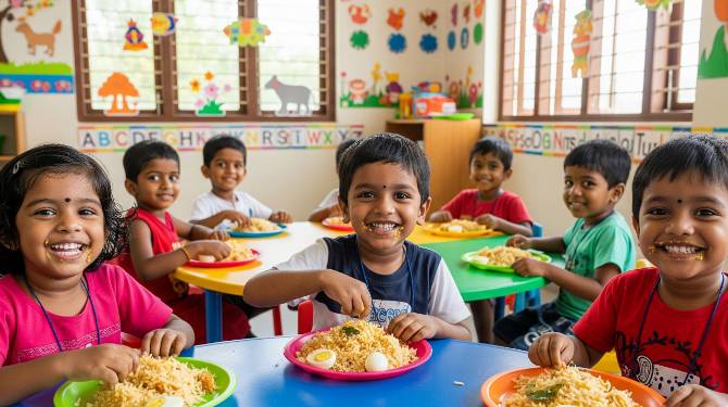 അംഗൻവാടികളിൽ WBNP വഴി വിതരണം ചെയ്യുന്ന അരി, പോഷക ബാല്യം പദ്ധതി വഴി സംസ്ഥാന സർക്കാർ നൽകുന്ന മുട്ട, പാൽ, തദ്ദേശ സ്വയംഭരണ സ്ഥാപനങ്ങൾ നൽകുന്ന മറ്റ് ഭക്ഷ്യവസ്തുക്കൾ എന്നിവ ഉപയോഗിച്ചാണ് ഗുണഭോക്താക്കളുടെ താൽപ്പര്യങ്ങൾക്കനുസൃതമായി കേന്ദ്ര സർക്കാർ നിർദ്ദേശിച്ച മാർഗ്ഗനിർദ്ദേശങ്ങൾക്കനുസൃതമായി പുതുക്കിയ മാതൃകാ ഭക്ഷണ മെനു നടപ്പിലാക്കുന്നത്.