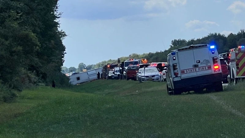 പെംബ്രോക്ക് (ന്യൂയോർക്ക്): ബഫലോ ജെനസീ കൗണ്ടിയിലെ ന്യൂയോർക്ക് സ്റ്റേറ്റ് ത്രൂവേയിൽ (I-90) വെള്ളിയാഴ്ച ടൂറിസ്റ്റ് ബസ് മറിഞ്ഞ് അഞ്ച് പേർ കൊല്ലപ്പെടുകയും നിരവധി പേർക്ക് പരിക്കേൽക്കുകയും ചെയ്തതായി ന്യൂയോര്ക്ക് സ്റ്റേറ്റ് പോലീസ് റിപ്പോര്ട്ട് ചെയ്തു.