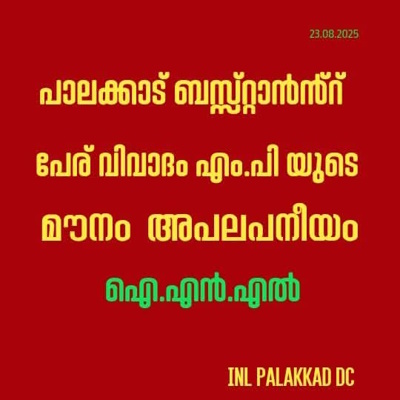 തന്റെ മണ്ഡലത്തിൽ നടക്കുന്ന പ്രധാനപ്പെട്ട ഒരു പരിപാടിയിൽ മുഖം കാണിക്കാൻ പോലും പറ്റാത്ത സദാചാര വിരുദ്ധ പ്രവർത്തനങ്ങളിൽ പെട്ട് ഒളിവിൽ കഴിയേണ്ടി വന്ന യു.ഡി.ഫ് എം.എൽ.എ യുടെ ഗതികേടുമാണ് പ്രധാന പ്രതിപക്ഷമായ യു.ഡി.എഫിന് ഈ വിഷയത്തെ എതിർത്ത് സംസാരിക്കാനുള്ള ധാർമികത നഷ്ടപ്പെട്ട ഗതികേടിലാണ് യു.ഡി.എഫ് നേതൃത്വമെന്നും ഐ.എൻ.എൻ ജില്ലാ എക്സിക്യൂട്ടിവ് യോഗം കുറ്റപ്പെടുത്തി. നഗരസഭാ ഭരണത്തിന്റെ മറവിൽ സംഘപരിവാർ അജണ്ട നടപ്പിലാക്കാനുള്ള ബി.ജെ.പിയുടെ ശ്രമത്തിനെതിരെ ജനാധിപത്യ മതേതര പ്രസ്ഥാനങ്ങൾ രംഗത്ത് വരണമെന്ന് യോഗം ആവശ്യപ്പെട്ടു.