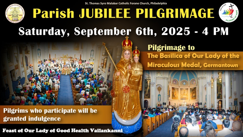 ഫിലഡല്ഫിയ: ചിക്കാഗൊ സെ. തോമസ് സീറോമലബാര് രൂപതയുടെ ഒരു വര്ഷം നീണ്ടു നില്ക്കുന്ന സില്വര് ജൂബിലിയാഘോഷങ്ങളുടെ ഭാഗമായി രൂപതയിലെ ഇടവകകളും, മിഷനുകളും നവീകരണധ്യാനങ്ങള്, തീര്ത്ഥാടനയാത്രകള്, ബൈബിള് പഠനങ്ങള്, ദിവ്യകാരുണ്യ ആരാധന എന്നിവ നടത്തിവരുന്നു. ആത്മീയ നവീകരണത്തിനായി ഫിലാഡല്ഫിയ ഫൊറോനാ ദേവാലയം ഈ ജൂബിലിവര്ഷത്തില് പ്രസിദ്ധ മരിയന് തീര്ത്ഥാടനകേന്ദ്രവും മൈനര് ബസിലിക്കയുമായ ജര്മ്മന്ടൗണ് മിറാക്കുലസ് മെഡല് ഷ്രൈനിലേക്ക് ജൂബിലി തീര്ത്ഥാടനം നടത്തുന്നു.