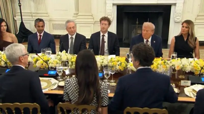 വാഷിംഗ്ടണ്: യുഎസ് പ്രസിഡന്റ് ഡൊണാൾഡ് ട്രംപ് വൈറ്റ് ഹൗസിൽ നിരവധി പ്രമുഖ വ്യക്തികള്ക്കായി ഒരു പ്രത്യേക അത്താഴവിരുന്ന് സംഘടിപ്പിച്ചു. ആർട്ടിഫിഷ്യൽ ഇന്റലിജൻസ്, ടെക്നോളജി കമ്പനികളുടെ നിക്ഷേപമായിരുന്നു ഈ അത്താഴവിരുന്നിന്റെ ലക്ഷ്യം. ബിൽ ഗേറ്റ്സ് (മൈക്രോസോഫ്റ്റ്), ടിം കുക്ക് (ആപ്പിൾ), മാർക്ക് സക്കർബർഗ് (ഫേസ്ബുക്ക്), സുന്ദർ പിച്ചൈ (ഗൂഗിൾ) എന്നിവരുൾപ്പെടെ 12 ലധികം കമ്പനികളുടെ സിഇഒമാർ ഈ അത്താഴവിരുന്നിൽ പങ്കെടുത്തു.