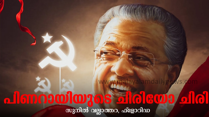 ഇന്ത്യൻ രാഷ്ട്രീയത്തിൽ ചിരിക്കുവാൻ പിശുക്കു കാട്ടുന്ന ഏക നേതാവ് മുഖ്യമന്ത്രി പിണറായി വിജയനാണ്. അദ്ദേഹം കടന്നു വന്ന യാതനകളും വേദനകളും കൊണ്ടും മാരകമായി ഏൽക്കേണ്ടി വന്ന മർദ്ദനങ്ങൾ കൊണ്ടും ആകാം അദ്ദേഹം വളരെ പരുക്കനായി മാറിയത്.