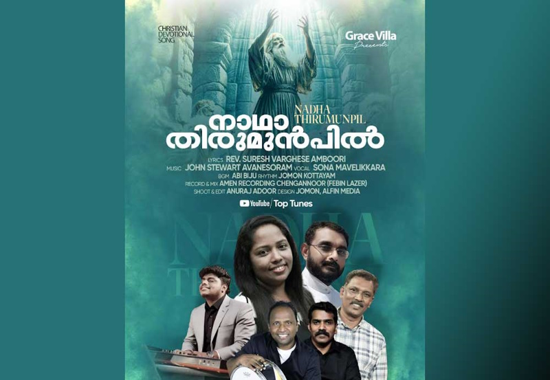 കാൽഗറി: റവ: സുരേഷ് വര്ഗീസ് അമ്പൂരി എഴുതി, ജോൺ സ്റ്റീവാർട്ട് അവനെസോരം സംഗീതം നൽകി സോനാ മാവേലിക്കര ആലപിച്ച ” നാഥാ തിരുമുൻപിൽ ” എന്ന ഭക്തിഗാനം പ്രകാശനം ചെയ്തു . ഗാനത്തിന് അബി ബിജു , ജോമോൻ കോട്ടയം എന്നിവർ പശ്ചാത്തല സംഗീതം ഒരുക്കിയപ്പപ്പോൾ , ദൃശ്യ ചാരുത അനുരാജ് അടൂർ ഒരുക്കിയിരിക്കുന്നു . ഗാനം റെക്കോർഡ് ചെയ്ത് മിക്സ് ചെയ്തത് ആമേൻ റെക്കോർഡിങ് ചെങ്ങന്നൂർ ആണ് .