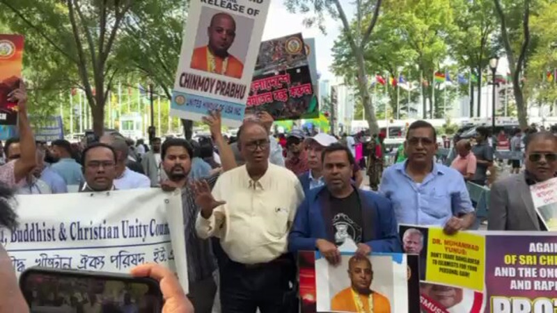 ന്യൂയോർക്കിലെ ഐക്യരാഷ്ട്രസഭയുടെ ആസ്ഥാനത്തിന് പുറത്ത് ഡോ. മുഹമ്മദ് യൂനുസിനെതിരെ ബംഗ്ലാദേശി കുടിയേറ്റക്കാർ വൻ പ്രതിഷേധം നടത്തി. യൂനുസ് ന്യൂനപക്ഷങ്ങൾക്കെതിരെ അക്രമത്തിന് പ്രേരിപ്പിക്കുകയും ഷെയ്ഖ് ഹസീനയുടെ സർക്കാരിനെ നിയമവിരുദ്ധമായി നീക്കം ചെയ്യുകയും ചെയ്തുവെന്ന് അവർ ആരോപിച്ചു. 2024 ഓഗസ്റ്റ് 5 മുതൽ ഹിന്ദു, ബുദ്ധ, ക്രിസ്ത്യൻ സമൂഹങ്ങൾക്കെതിരായ ആക്രമണങ്ങൾ വർദ്ധിച്ചുവെന്നും ആയിരക്കണക്കിന് ആളുകളെ പലായനം ചെയ്യാൻ നിർബന്ധിതരാക്കിയെന്നും പ്രതിഷേധക്കാർ പറയുന്നു.