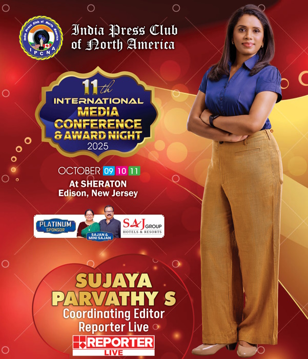 ന്യൂയോർക്ക് : അടുത്ത വാരാന്ത്യത്തിൽ, ഒക്ടോബർ 9-10-11 തീയതികളിൽ ന്യൂജെഴ്സി എഡിസണിലെ ഷെറാട്ടൺ ഹോട്ടലിൽ നടക്കുന്ന ഇന്ത്യ പ്രസ് ക്ലബ് ഓഫ് നോർത്ത് അമേരിക്കയുടെ ത്രിദിന അന്താരാഷ്ട്ര മാധ്യമ സമ്മേളനത്തിൽ സുജയ പാർവതി പങ്കെടുക്കുന്നു. വിട്ടുവീഴ്ചയില്ലാത്ത നിലപാടുകൾ കൊണ്ടും, വാർത്താ അവതരണ ശൈലികൊണ്ടും മലയാള ടിവി ചാനൽ രംഗത്ത് വേറിട്ട് നിൽക്കുന്നു സുജയ, വിവിധ ചാനലുകളിലൂടെ അവരുടെ ശക്തമായ അവതരണശൈലി ജനങ്ങൾ കണ്ടറിഞ്ഞു. സുജയ പാർവതിയെപ്പോലെ സ്വതന്ത്രാഭിപ്രായം പറയാൻ മടിക്കാത്തവർ ചുരുക്കമെന്നു തന്നെ പറയാം.