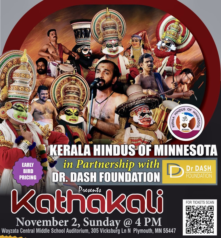 മിനസോട്ട: കേരളത്തിലെ ക്ലാസിക്കൽ നൃത്ത-നാടകമായ കഥകളിയുടെ അപൂർവ പ്രദർശനം ഒരുക്കി മിനസോട്ടയിലെ മലയാളികൾ, ഡോ. ഡാഷ് ഫൗണ്ടേഷനുമായി സഹകരിച്ച് ഇന്ത്യയുടെ സാംസ്കാരിക പൈതൃകം കഥകളിയുടെ അവതരിപ്പിക്കാനൊരുങ്ങുന്നു.