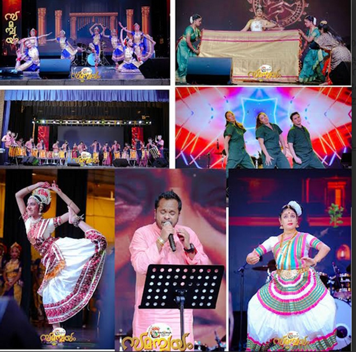 തുടർന്ന് , സ്വരമുദ്ര ഡാൻസ് അക്കാദമിയിലെ മിടുക്കികൾ  സമന്വയ യുടെ അവതരണ ഗാനത്തിന്  ചുവടുവച്ചുകൊണ്ട്  കലാപരിപാടികൾ  പരിപാടികൾ ആരംഭിച്ചു. സ്വരമുദ്ര ഡാൻസ് അക്കാദമി അവതരിപ്പിച്ച  മോഹിനിയാട്ടം, നർത്തകി മാലാ പിഷാരടിയുടെ മോഹിനിയാട്ടം, ഫാഷിൻ എന്ന ഉക്രൈൻ ഡാൻസേഴ്സിൻ്റെ ഫ്യൂഷൻ ഡാൻസ്, ശ്രീ അഭിരാമി ഡാൻസ് അക്കാദമി യുടെ “ഭസ്മാസുര മോഹിനി” ഭരതനാട്യം, അനിത് കുമാറിൻ്റെ കവിതാലാപനം, നോവാസകോഷ്യയിലെ തരംഗം ലുനൻബർഗ് ചെണ്ടമേള സംഘം അവതരിപ്പിച്ച ശിങ്കാരിമേളം എന്നിവയോടൊപ്പം ആൽബർട്ട കാൽഗറിയിലെ  മ്യൂസിക്ക് ട്രൂപ്പ് കൈതോല അവതരിപ്പിച്ച സംഗീത നിശയും  കാണികളെ ആവേശം കൊള്ളിച്ചു.