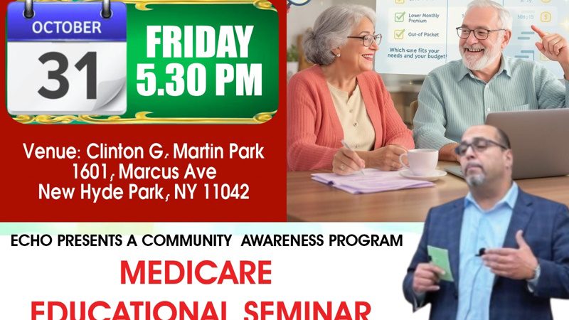ന്യൂയോർക്ക്: ന്യൂഹൈഡ് പാർക്ക് ആസ്ഥാനമായി പ്രവർത്തിക്കുന്ന ECHO (Enhance Community through Harmonious Outreach) എന്ന ചാരിറ്റി സംഘടന മുതിർന്ന പൗരന്മാർക്കായി നടത്തുന്ന “സീനിയർ വെൽനെസ്സ്” പ്രോഗ്രാമിൽ മെഡികെയറിനെ സംബന്ധിച്ച് അറിഞ്ഞിരിക്കേണ്ടതായ വിശദ വിവരങ്ങൾ അടങ്ങുന്ന സെമിനാർ നടത്തുന്നു. ഒക്ടോബർ 31 വെള്ളിയാഴ്ച വൈകിട്ട് 5:30-ന് ന്യൂഹൈഡ് പാർക്കിലുള്ള ക്ലിന്റൺ ജി. മാർട്ടിൻ കമ്മ്യൂണിറ്റി ഹാളിലാണ് (Clinton G. Martin Community Hall, 1601 Marcus Avenue, New Hyde Park , NY 11042) സെമിനാർ സംഘടിപ്പിക്കുന്നത്.