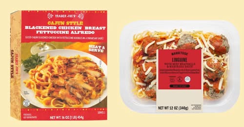 ട്രേഡർ ജോസിന്റെ കാജുൻ സ്റ്റൈൽ ബ്ലാക്ക്നെഡ് ചിക്കൻ ബ്രെസ്റ്റ് ഫെറ്റൂസിൻ ആൽഫ്രെഡോ, മാർക്കറ്റ്സൈഡ് ലിംഗ്വിൻ വിത്ത് ബീഫ് മീറ്റ്ബോൾസ് & മരിനാര സോസ് എന്നിവ തിരിച്ചുവിളിക്കപ്പെടുന്ന തയ്യാറാക്കിയ പാസ്ത ഭക്ഷണങ്ങളിൽ ഉൾപ്പെടുന്നു.