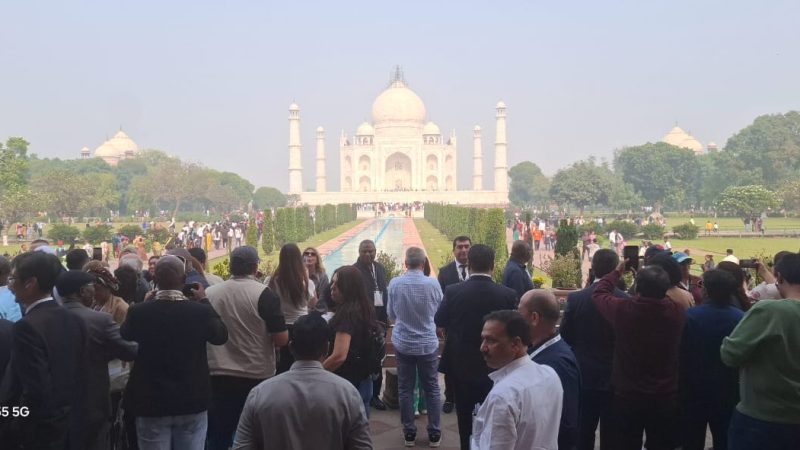 പ്രണയത്തിന്റെ പ്രതീകമായ താജ്മഹൽ വ്യാഴാഴ്ച ദിവസം മുഴുവൻ വിവിഐപികളുടെ തിരക്കിലായിരുന്നു. രാവിലെ, മുൻ പ്രസിഡന്റുമാർ, മുൻ പ്രധാനമന്ത്രിമാർ, ചീഫ് ജസ്റ്റിസുമാർ എന്നിവരുൾപ്പെടെ 40 രാജ്യങ്ങളിൽ നിന്നുള്ള 126 വിശിഷ്ടാതിഥികൾ താജ്മഹൽ സന്ദർശിച്ചു. അതേസമയം, ഉച്ചകഴിഞ്ഞ്, യുഎസ് പ്രസിഡന്റ് ഡൊണാൾഡ് ട്രംപിന്റെ മകൻ ജൂനിയർ ട്രംപ് എന്നറിയപ്പെടുന്ന ഡൊണാൾഡ് ജോൺ ട്രംപ് ആഗ്രയിലെത്തി. കാമുകിക്കും സുഹൃത്തുക്കൾക്കുമൊപ്പം അദ്ദേഹം താജ്മഹൽ സന്ദർശിച്ചു.