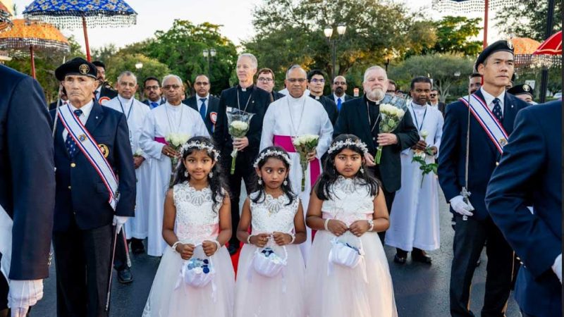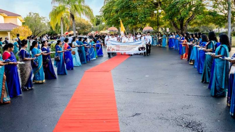 നവംബർ 18-ആം തിയതി ചൊവ്വാഴ്ച വയ്ക്ക്ന്നേരം അഞ്ചുമണിക്ക് കോറൽ സ്പ്രിങ്സ് സെൻറ് എലിസബത്ത് ആൻ സെറ്റൺ കാത്തലിക് ചർച്ച് മൈതാനത്ത് എത്തിച്ചേർന്ന മയാമി ആർച്ച് ബിഷപ്പ് തോമസ് വെൻസ്കി, അമേരിക്കൻ ബിഷപ്പ് കോൺഫ്രൻസ് അംഗവും പെൻസിക്കോള ബിഷപ്പുമായ വില്യം എ വാക്ക്, ചിക്കാഗോ സീറോ മലബാർ രൂപതാദ്ധ്യക്ഷൻ ബിഷപ്പ് ജോയ് ആലപ്പാട്ട്, ചിക്കാഗോ രൂപതയുടെ പ്രഥമ മെത്രാൻ ബിഷപ്പ് എമിററ്റസ്, ബിഷപ്പ് ജേക്കബ് അങ്ങാടിയത്ത്, വികാർ ജനറൽമാരായ ഫാ:ജോണ് മേലേപ്പുറം, ഫാ:തോമസ് കടുകപ്പള്ളി എന്നിവരോടൊപ്പം അതിഥികളായി എത്തിയ നൂറ്റി അൻപത് വൈദികരേയും കേരള തനിമയുടെ പാരമ്പര്യം ഉണർത്തുന്ന താലപ്പൊലിയും, മുത്തുക്കുടകളും, ചെണ്ടവാദ്യങ്ങളുടേയും അകമ്പടിയോടെ, ചുവപ്പ് പരവതാനിയിലൂടെ നൈറ്റ് ഓഫ് കൊളംബസിന്റെ ഗാർഡ് ഓഫ് ഓണർ ഏറ്റുവാങ്ങി ദേവാലയത്തിലേക്ക് ഘോഷയാത്രയായി ആനയിച്ചു.