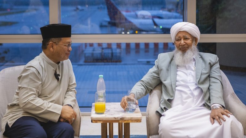 ഫോട്ടോ: അന്താരാഷ്ട്ര ഹദീസ് പാരായണ സമാപനസമ്മേളനത്തിന് നേതൃത്വം നല്കാൻ എത്തിയ ഇന്ത്യൻ ഗ്രാൻഡ് മുഫ്തി കാന്തപുരം എ പി അബൂബക്കർ മുസ്ലിയാരുമായി മതകാര്യ വകുപ്പ് മന്ത്രി ഡോ. മുഹമ്മദ് നഈം ബിൻ മുഖ്താർ ക്വാലാലംപൂർ അന്താരാഷ്ട്ര വിമാനത്താവളത്തിൽ കൂടിക്കാഴ്ച നടത്തുന്നു.