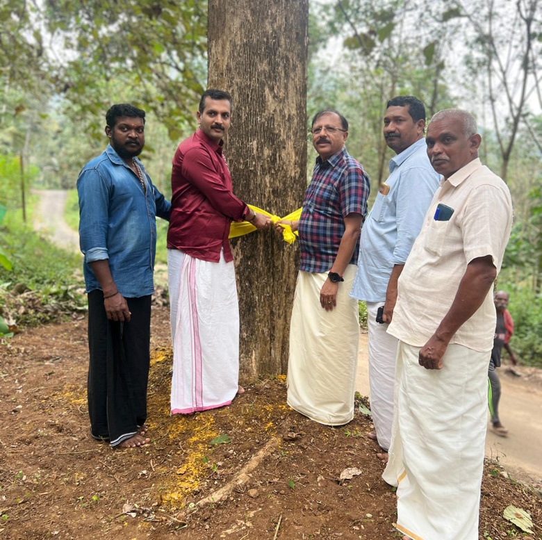 തേക്ക് മരം വെട്ടുന്നതിനുമുമ്പ് ആവശ്യമായ അനുമതിയും അനുഗ്രഹവും തേടി 28-11-2025ന് നടത്തിയ ചടങ്ങിന്റെ ദൃശ്യങ്ങളാണിവ.