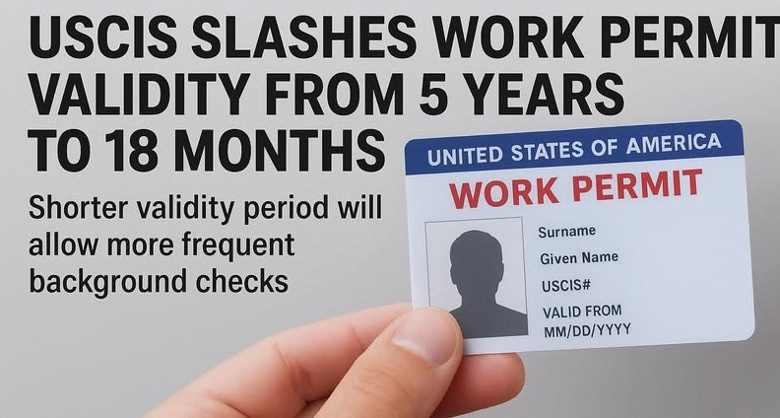 തൊഴിൽ അംഗീകാര രേഖകളുടെ (EADs) പരമാവധി കാലാവധി അമേരിക്കൻ പൗരത്വ, കുടിയേറ്റ സേവന വിഭാഗം (USCIS) ഗണ്യമായി കുറച്ചു. സുരക്ഷാ പരിശോധനകൾ ശക്തിപ്പെടുത്താനും വഞ്ചന തടയാനും വേണ്ടിയാണ് നടപടിയെന്ന് ഏജൻസി അറിയിച്ചു.
