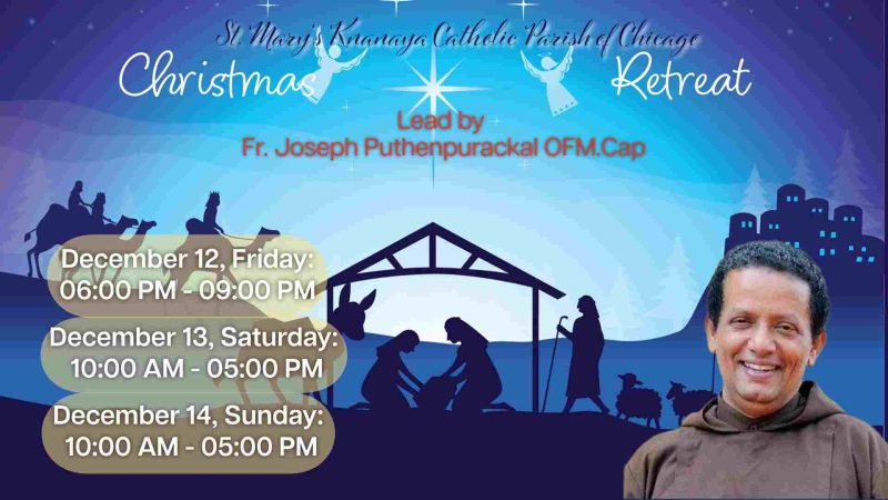 ചിക്കാഗോ: ചിക്കാഗോ സെന്റ് മേരീസ് ക്നാനായ കത്തോലിക്കാ ഇടവകയിൽ ക്രിസ്തുമസിനൊരുക്കമായുള്ള ധ്യാനത്തിന് പ്രശസ്ത വാഗ്മിയും കപ്പൂച്ചിൻ സഭാംഗവുമായ ഫാ. ജോസഫ് പുത്തൻപുരക്കൽ നേതൃത്വം നൽകും.