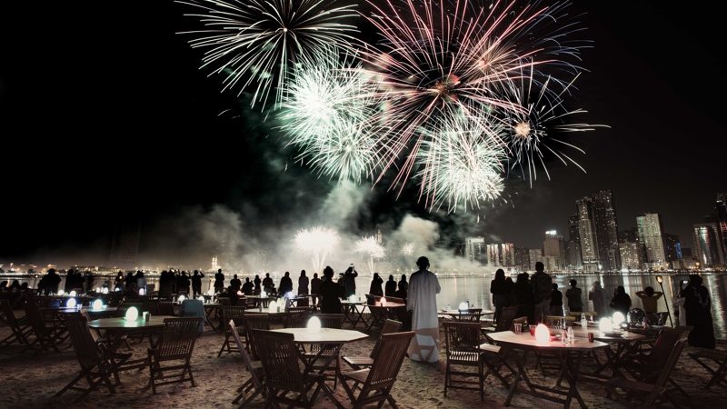 - അൽമജാസ് വാട്ടർഫ്രണ്ട്, അൽ ഹീറ ബീച്ച്, ഖോർഫക്കാൻ ബീച്ച് എന്നിവിടങ്ങളിൽ 10 മിനുറ്റ് നീണ്ടുനിൽക്കുന്ന കരിമരുന്ന് പ്രയോഗങ്ങൾ