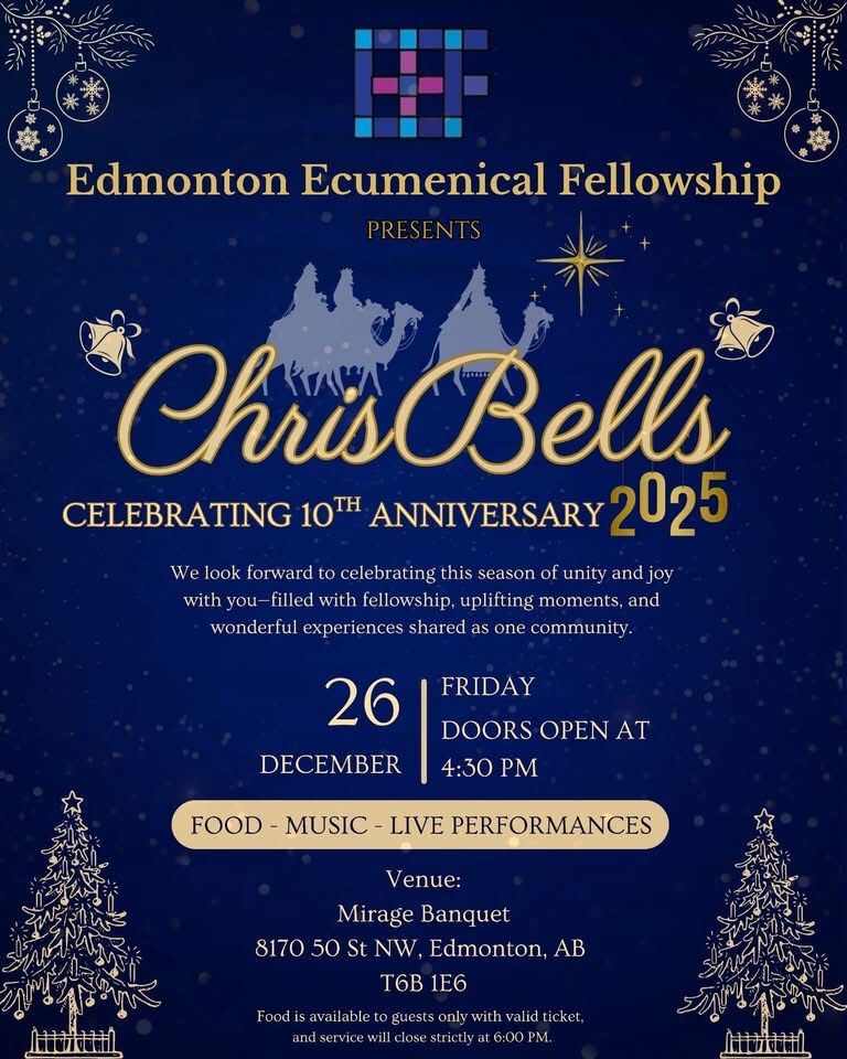 പത്താം വാർഷികാഘോഷങ്ങളുടെ ഭാഗമായി സംഘടിപ്പിക്കുന്ന വാർഷിക ക്രിസ്മസ് സംഗമം ‘ക്രിസ്ബെൽസ് 2025 ‘ ഡിസംബർ 26-ന് 50-ാം സ്ട്രീറ്റിലെ മിറേജ് ബാങ്ക്വറ്റ് ഹാളിൽ നടക്കും. ഫോർട്ട് സസ്കാച്വൻ എം.പി ഗാർനെറ്റ് ജീനിയസ് ആഘോഷങ്ങൾ ഉദ്ഘാടനം ചെയ്യും, അതോടൊപ്പം ഫെലോഷിപ്പിന്റെ പുതിയ വെബ്സൈറ്റിന്റെ പ്രകാശനവും അദ്ദേഹം നിർവ്വഹിക്കും. എഡ്മന്റൺ എക്യുമെനിക്കൽ ഫെലോഷിപ്പ് പ്രസിഡന്റ് റവ. തോമസ് പൂതിയോട്ട് ക്രിസ്മസ് സന്ദേശം നൽകും.