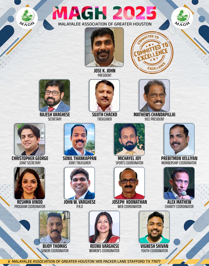 ഡിസംബർ 13ന് നടന്ന തെരഞ്ഞെടുപ്പിൽ റോയ് മാത്യുവിന്റെ നേതൃത്വത്തിലുള്ള ടീം യുണൈറ്റഡ് മികച്ച വിജയമാണ് കരസ്ഥമാക്കിയത്. ഡിസംബർ 27 നടക്കുന്ന സത്യപ്രതിജ്ഞ ചടങ്ങിൽ പ്രസിഡണ്ടായി തിരഞ്ഞെടുക്കപ്പെട്ട റോയി മാത്യുവിനോടൊപ്പം വിനോദ് ചെറിയാൻ, സന്തോഷ് ആറ്റുപുറം, അനില സന്ദീപ്, ഷിനു എബ്രഹാം, സുബിൻ ബാലകൃഷ്ണൻ, ജിൻസ് മാത്യു, സുനിൽ തങ്കപ്പൻ, സാജൻ ജോൺ, ജീവൻ സൈമൺ, അമ്പിളി ആന്റണി, ബെനിജ ചെറു, മിഖായേൽ ജോയ്, ബിജു ശിവൻ, ഡെന്നിസ് മാത്യു എന്നിവരും പുതിയ ഭരണസമിതിയിലേക്ക് സത്യപ്രതിജ്ഞ ചെയ്ത് അധികാരമേൽക്കും. ട്രസ്റ്റീ ബോർഡിലേക്ക് തിരഞ്ഞെടുക്കപ്പെട്ട ക്ലാരമ്മ മാത്യുവും സത്യപ്രതിജ്ഞ ചെയ്ത് പദവി ഏറ്റെടുക്കും. ട്രസ്റ്റീ ബോർഡ് ചെയർമാൻ ജിമ്മി കുന്നശ്ശേരി സത്യപ്രതിജ്ഞ ചടങ്ങുകൾക്ക് നേതൃത്വം നൽകും. ചരിത്രത്തിലെ ഏറ്റവും മികച്ച മാഗ് തെരഞ്ഞെടുപ്പിനാണ് ഹൂസ്റ്റൺ സാക്ഷ്യം വഹിച്ചത്. കുറ്റമറ്റ രീതിയിൽ, സാങ്കേതികമികവോടെ തെരഞ്ഞെടുപ്പ് സംഘടിപ്പിക്കാൻ കഴിഞ്ഞു എന്നുള്ളത് നിലവിലുള്ള ബോർഡിനെ സംബന്ധിച്ച് വലിയ നേട്ടമായി. ഇലക്ഷൻ കമ്മീഷന്റെ മികവുറ്റ പ്രവർത്തനവും ശ്ലാഘനീയമാണ്.