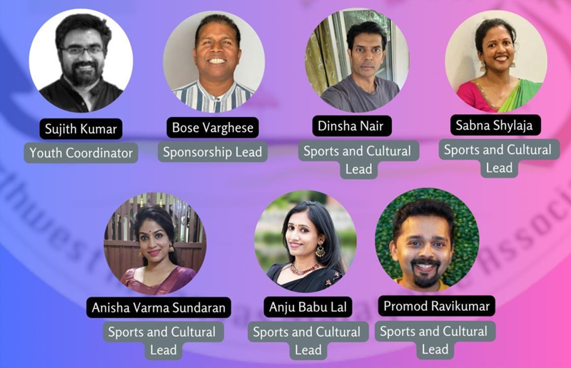 സംഘടനാ നേതൃത്വം: അനൂപ് പ്രസന്ന (പ്രസിഡന്റ്), മീനു രംഗരാജ് (വൈസ് പ്രസിഡന്റ്), നീലേഷ് കൃഷ്ണൻ (സെക്രട്ടറി), സപ്ന രാമചന്ദ്രൻ (ജോയിന്റ് സെക്രട്ടറി), സഞ്ജിത് രാമകൃഷ്ണൻ (ട്രഷറർ), വത്സരാജ് ശിവശങ്കരൻ (ജോയിന്റ് ട്രഷറർ), ലിനീഷ് കുമാർ (പി.ആർ.ഒ), ചിദംബരം ശ്രീകുമാരൻ (ജോയിന്റ് പി.ആർ.ഒ), സുജിത് കുമാർ (യൂത്ത് കോർഡിനേറ്റർ), ബോസ് വർഗീസ് (സ്പോൺസർഷിപ്പ് ലീഡ്), ദിൻഷാ നായർ (സ്പോർട്സ് ആൻഡ് കൾച്ചറൽ ലീഡ്), സബ്ന ശൈലജ (സ്പോർട്സ് ആൻഡ് കൾച്ചറൽ ലീഡ്), അനീഷ വർമ്മ സുന്ദരൻ (സ്പോർട്സ് ആൻഡ് കൾച്ചറൽ ലീഡ്), അഞ്ജു ബാബു ലാൽ (സ്പോർട്സ് ആൻഡ് കൾച്ചറൽ ലീഡ്), പ്രമോദ് രവികുമാർ (സ്പോർട്സ് ആൻഡ് കൾച്ചറൽ ലീഡ്).
