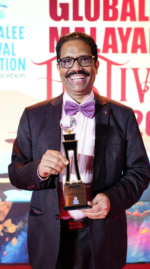 കൊച്ചി ക്രൗണ് പ്ളാസ ഹോട്ടലില് നടന്ന പ്രഥമ ഗ്ളോബല് മലയാളി ഫെസ്റ്റിവലില് വെച്ച് മലയാളി ഫെസ്റ്റിവല് ഫെഡറേഷന് മുഖ്യ രക്ഷാധികാരിയും നയതന്ത്ര വിദഗ്ധനുമായ അംബാസിഡര് ഡോ. ടി.പി. ശ്രീനിവാസനാണ് പുരസ്കാരം സമ്മാനിച്ചത്.