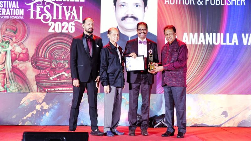 കൊച്ചി: വിവിധ ഭാഷകളിലായി 100 പുസ്തകങ്ങള് പ്രസിദ്ധീകരിച്ച ആദ്യ പ്രവാസി മലയാളിയായ ഡോ. അമാനുല്ല വടക്കാങ്ങരക്ക് മലയാളി ഫെസ്റ്റിവല് ഫെഡറേഷന്റെ ഗ്രന്ഥ രചനക്കുള്ള പ്രഥമ ഗ്ളോബല് രത്ന അവാര്ഡ് സമ്മാനിച്ചു.