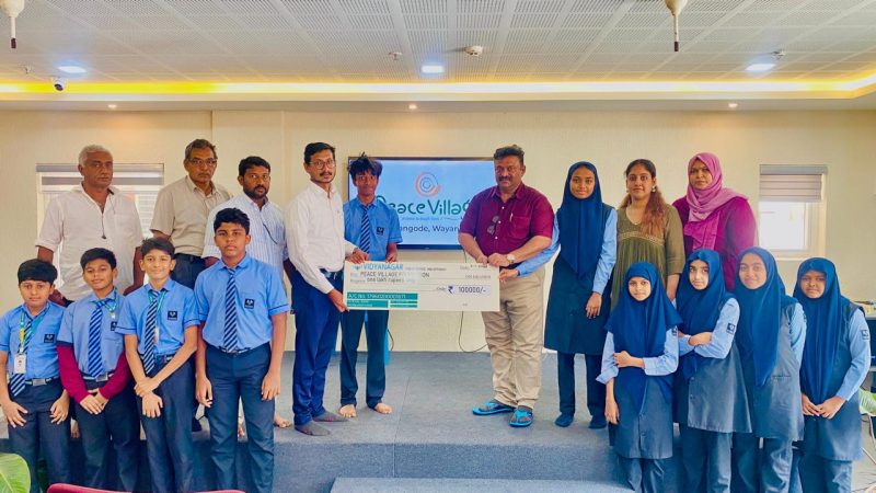 മലപ്പുറം: വിദ്യാനഗർ പബ്ലിക് സ്കൂൾ വിദ്യാർത്ഥികൾ വയനാട്ടിലെ പീസ് വില്ലേജ് സന്ദർശിച്ചു. വിദ്യാലയത്തിൽ സംഘടിപ്പിച്ച“Yummy Fest” എന്ന ഫുഡ് ഫെസ്റ്റിൽ നിന്നു സമാഹരിച്ച തുകയും സ്കൂൾ മാനേജ്മെന്റ് നൽകിയ സംഭാവനയും ചേർത്ത് ഒരു ലക്ഷം രൂപ (₹1,00,000) പീസ് വില്ലേജ് ജനറൽ മാനേജർ ഷാക്കിറിന് സ്കൂൾ പ്രിൻസിപ്പൽ അബ്ദുൽ ഹമീദ് കൈമാറി.