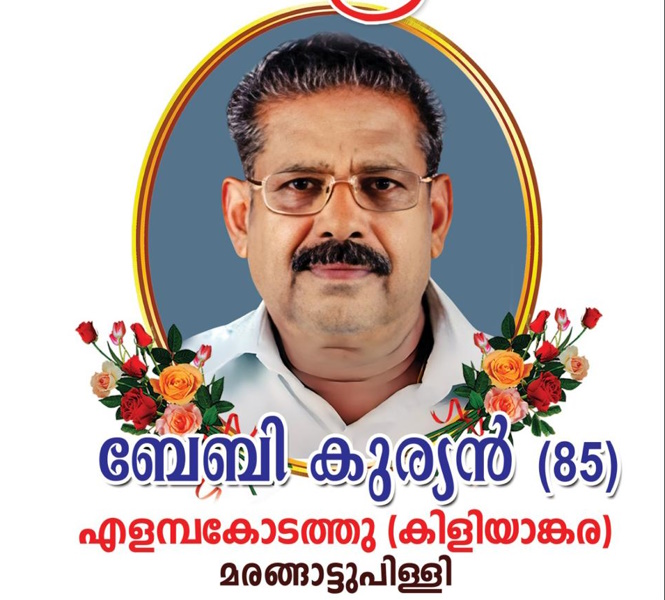 ന്യൂയോർക്ക്: ബേബി കുര്യൻ കിളിയാങ്കര ,മരങ്ങാട്ടുപിള്ളി നിര്യാതനായി. ആദ്യകാല കേരള കോണ്ഗ്രസ് പ്രവര്ത്തകനും മാണിസാറിന്റെ അടുത്ത സുഹൃത്തും ഇലക്കാട് മണ്ഡലം സെക്രട്ടറിയുമായിരുന്നു പരേതന്.പ്രമുഖ അമേരിക്കൻ വ്യവസായിയും, ഇൻഡോ അമേരിക്കൻ പ്രസ് ക്ലബ് നാഷണൽ സെക്രട്ടറി യും , ന്യൂയോർക്ക് സ്റ്റേറ്റ് പ്രിസണിൻ്റെ സീനിയർ റിക്രൂട്ടിംഗ് ഓഫീസർ ഇൻ ചാർജും , ഇൻഡോ അമേരിക്കൻ ചേമ്പർ ഓഫ് ബിസിനസ് മുൻ പ്രസിഡൻ്റും പ്രവാസി കേരളാ കോൺഗ്രസ് (എം ) നേതാവുമായ ജിജി കുര്യൻ്റെ പിതാവാണ് പരേതൻ.