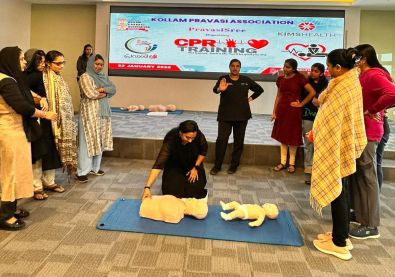 ബഹ്റൈന്: കൊല്ലം പ്രവാസി അസോസിയേഷൻ പ്രവാസിശ്രീയുടെ ആഭിമുഖ്യത്തിൽ ഉമ്മൽ ഹസ്സം കിംസ് ഹെൽത്ത് ഹോസ്പിറ്റലുമായി ചേർന്ന് സ്ത്രീകൾക്കായി സംഘടിപ്പിച്ച സിപിആർ (CPR) ട്രെയിനിംഗ് ക്ലാസ് ശ്രദ്ധേയമായി. 45-ൽ പരം വനിതകൾ ഈ ക്ലാസ് ഉപയോഗപ്രദമാക്കി.