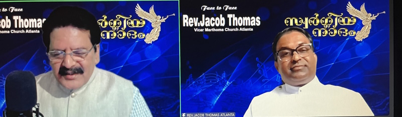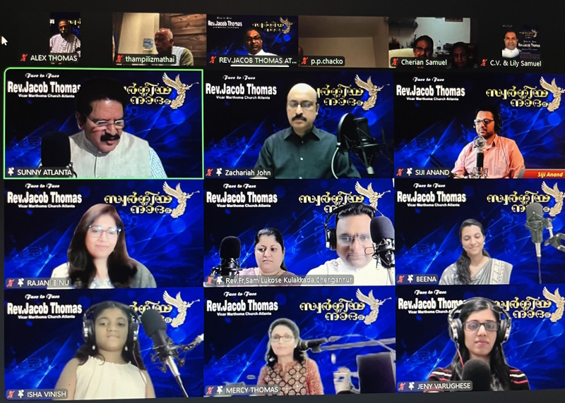 അറ്റ്ലാന്റ: പ്രശസ്ത ഗായകനും വരികളെഴുത്തുകാരനുമായ അറ്റ്ലാന്റ മാർത്തോമാ ചർച്ച് വികാരി റവ. ജേക്കബ് തോമസ് (ആനിക്കാട് അച്ചൻ) നയിച്ച ‘ഫേസ് ടു ഫേസ്’ ലൈവ് സ്ട്രീമിംഗ് സംഗീത നിശ ഭക്തിസാന്ദ്രമായി സമാപിച്ചു.സ്വർഗീയ നാദം കൂട്ടായ്മ ജനുവരി 25 ഞായറാഴ്ച വൈകിട്ട് നടന്ന പരിപാടിയിൽ ലോകത്തിന്റെ വിവിധ ഭാഗങ്ങളിൽ നിന്നുള്ള സംഗീതപ്രേമികൾ സൂം (Zoom) പ്ലാറ്റ്ഫോമിലൂടെ പങ്കെടുത്തു.