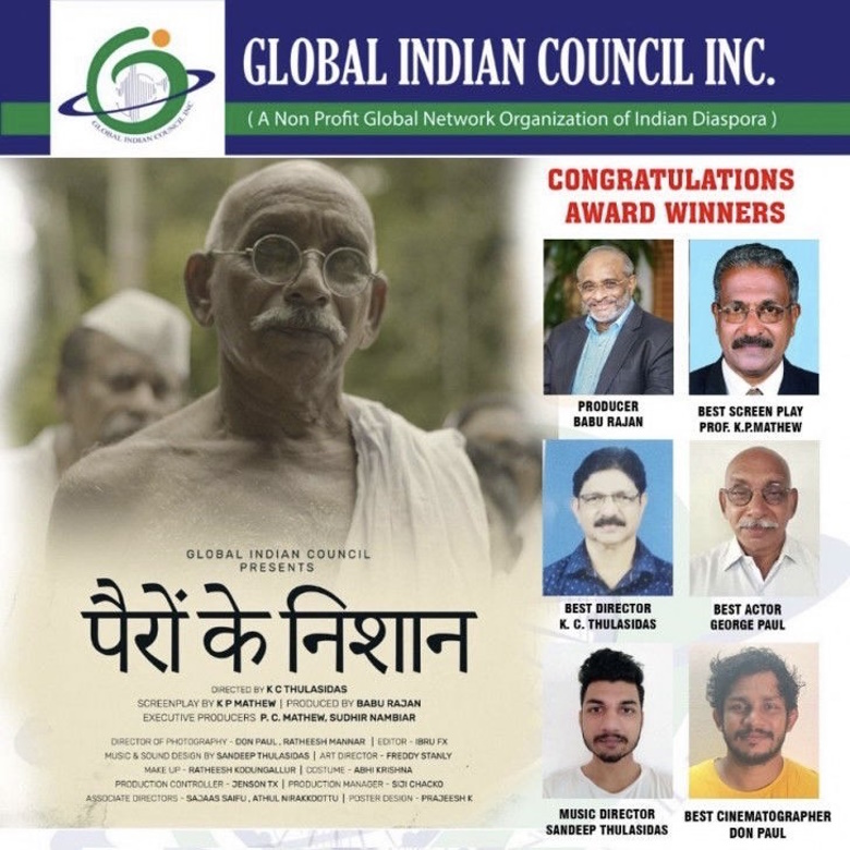 സെന്റർ ഓഫ് എക്സലൻസ് – റെഡ് കാർപെറ്റിന്റെ ചെയർമാൻ എന്ന നിലയിൽ, ഡോ. ബാബു രാജ് (നിർമ്മാതാവ്), കെ.പി. മാത്യു (തിരക്കഥാകൃത്ത്), തുളസീദാസ് (സംവിധായകൻ), ദി ഫുട് പ്രിന്റ്സിന്റെ അഭിനേതാക്കൾ എന്നിവരെ അഭിനന്ദിച്ചു. ഒരു സാധാരണ മനുഷ്യൻ അസാധാരണവും സവിശേഷവുമായ എന്തെങ്കിലും സൃഷ്ടിക്കുമ്പോൾ അത് അതുല്യവും സവിശേഷവുമാകും. ആലപ്പുഴ സ്വദേശിയായ ഗാന്ധിജി മഹാത്മാഗാന്ധിയായി പ്രധാന വേഷം ചെയ്തതുപോലെ തോന്നിക്കുന്ന മിസ്റ്റർ ജോർജ്, നമ്മുടെ രാഷ്ട്രപിതാവിന്റെ മറക്കാനാവാത്ത ഒരു ചിത്രം കാഴ്ചക്കാരുടെ മനസ്സിൽ നൽകുന്നു.