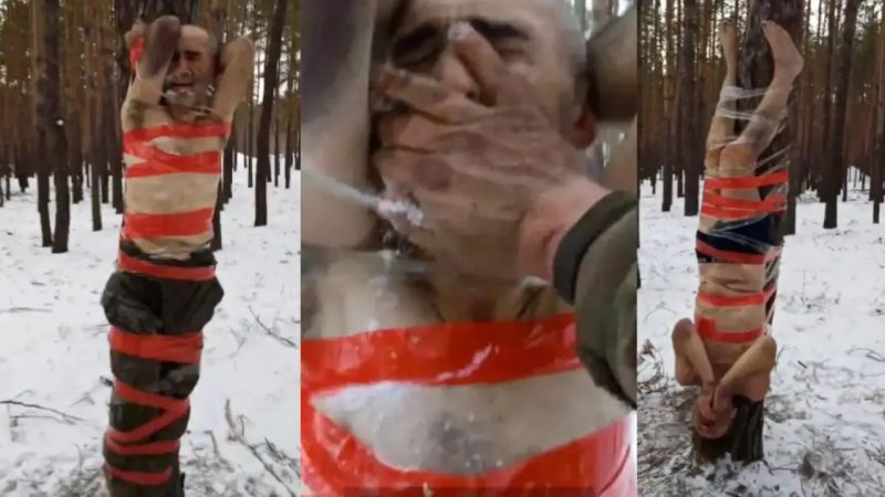 ഒരു റഷ്യൻ സൈനിക കമാൻഡർ സ്വന്തം സൈനികരോട് മനുഷ്യത്വരഹിതമായി പെരുമാറുന്ന ഭയാനകമായ വീഡിയോ സോഷ്യൽ മീഡിയയിൽ പ്രചരിച്ചു. മഞ്ഞുമൂടിയ വനത്തിൽ രണ്ട് സൈനികരെ തലകീഴായി മരങ്ങളിൽ കെട്ടിയിട്ടിരിക്കുന്നതായി വീഡിയോയിൽ കാണാം. കൊടും തണുപ്പില് രണ്ട് സൈനികരും ഏതാണ്ട് അർദ്ധനഗ്നരായാണ് കാണപ്പെടുന്നത്.
