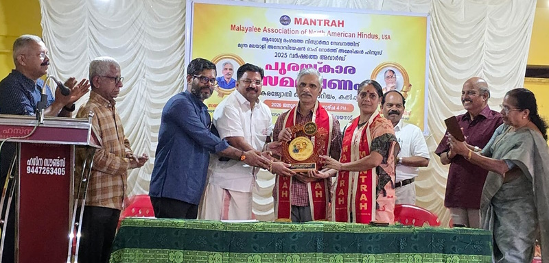 ആരോഗ്യ രംഗത്തെ നിസ്വാർത്ഥ സേവനങ്ങളെ ആദരിച്ച് MANTRAH (Malayalee Association of North American Hindus – USA) നൽകുന്ന 2025 ലെ ‘സ്വാസ്ഥ്യ മിത്ര’ പുരസ്കാരം ഡോ. സഞ്ജീവ് വാസുദേവ്ക്കും ഡോ. അജിതാ സഞ്ജീവ്ക്കും സമർപ്പിച്ചു.