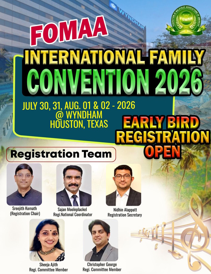 ന്യൂയോർക്ക്: ജൂലൈ 30 മുതൽ ആഗസ്ത് 2-ാം തീയതി വരെ, ഹ്യൂസ്റ്റനിൽ അരങ്ങേറുന്ന ഒമ്പതാമത് ഫോമാ അന്താരാഷ്ട്ര കൺവെൻഷൻറെ വിജയകരമായ നടത്തിപ്പിനു വേണ്ടി രജിസ്ട്രേഷൻ കമ്മിറ്റി രൂപീകരിച്ചു.