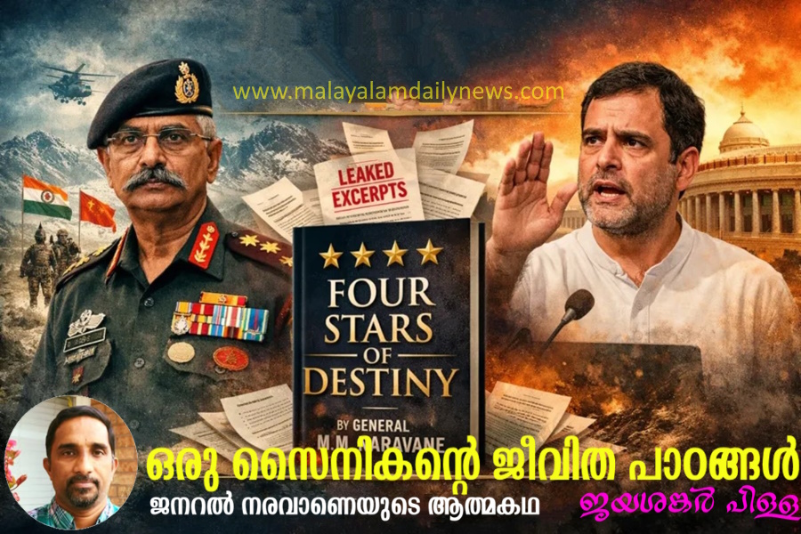 രാഷ്ട്രീയ താത്പര്യങ്ങൾ, നേട്ടങ്ങൾ, പൊതുജനങ്ങളെ തെറ്റിദ്ധരിപ്പിയ്ക്കുക എന്ന ലക്ഷ്യവുമായി ഭാരതത്തിന്റെ ജനാധിപത്യ സഭയിൽ രാഹുൽ ഗാന്ധി പ്രസിദ്ധീകരിയ്ക്കാത്ത ഒരു പുസ്തകത്തിന്റെ കവർ പേജ് ഉയർത്തിക്കാട്ടി അനാവശ്യ വിവാദം സൃഷ്ടിയ്ക്കുകയാണല്ലോ?! ഈ സാഹചര്യത്തിലാണ് പെൻഗ്വിൻ ബുക്ക്സ് പ്രസാദകരായിട്ടുള്ള “Four Star of Destiny” എന്ന ജനറൽ മനോജ് മുകുന്ദ് നരാവണേ യുടെ ആത്മകഥയെ കുറിച്ച് എഴുതുവാൻ പ്രേരിപ്പിക്കുന്നത്. 2024 മെയ് 1 നു ആമസോണിൽ പ്രീ ഓർഡർ സ്വീകരിയ്ക്കുന്നതിനായി വേണ്ടി മാത്രമാണ് ഈ പുസ്തകത്തിന്റെ കവർ പേജ്, ഉള്ളടക്കം എന്നിവ പ്രസാധകർ പൊതു സമൂഹത്തിനു നൽകിയിട്ടുള്ളത്.